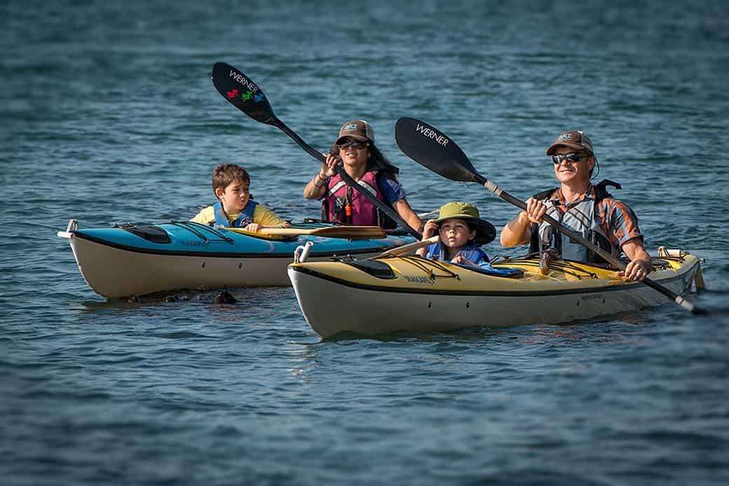 Explore the coastline with our top-quality tandem kayaks, perfect for an adventure with your family.